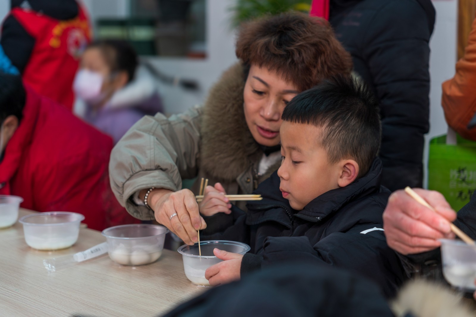 最后,精心准备的一碗碗冒着热气的汤圆、一份份代表祝福的礼品,纷纷给到现场的居民朋友,吃着甜甜蜜蜜的汤圆,聊着邻里家常,大、小朋友齐聚一堂,每个人的脸上都神采飞扬,社区大家庭其乐融融的氛围顿时驱散了冬日里的寒气,暖意情意在心间围绕。