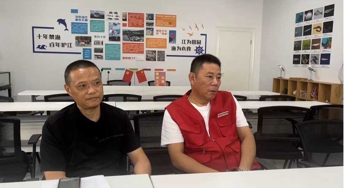 堡渔村的村民代表也来到了现场接受实践队的专访。他表示在第一时间得知长江十年禁渔政策的时候,从情感上来说是比较难以接受的,但是经过相关的宣传教育和政府的资金和就业补贴,他也逐渐接受了这个政策。虽然禁渔后的收入比禁渔前有一定的减少,但是就生活作息而言,禁渔后比禁渔前规律了许多。