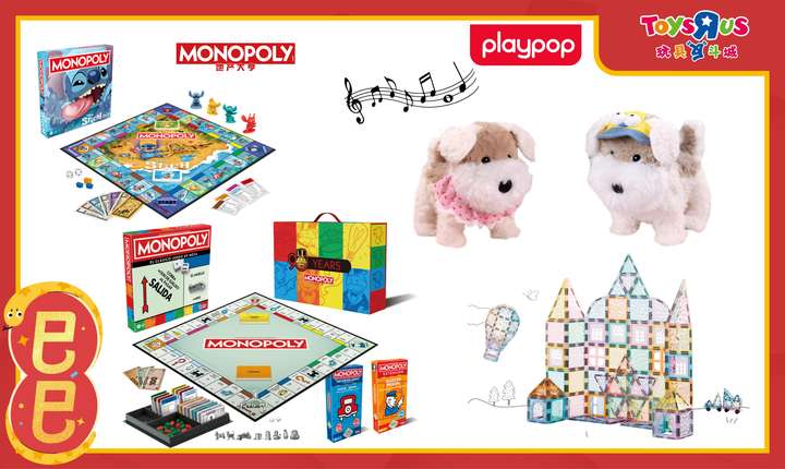 大小朋友都爱玩的热门品类优惠力度令人惊喜: 不仅有地产大亨90周年礼盒、地产大亨之史迪奇、还有PLAYPOP冰透彩钻磁 力片、PLAYPOP培玩宝猎狐梗等特色产品,新春好价八折起,为大小玩具迷都带来具有性价比的丰富玩趣选择。
