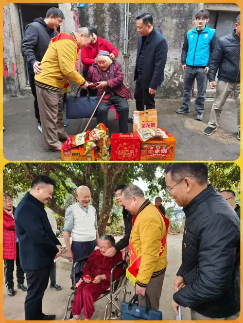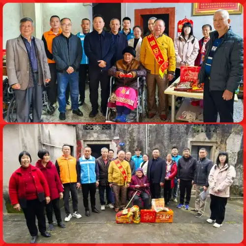 在农历蛇年春节即将到来之际,为弘扬中华传统百善孝为先的理念,发扬尊老敬老的道德风尚,2025年1月22日,中国诚信楷模人物、“中国好人”、“中国好人”公益团队负责人、“广东好人”、梅州市道德模范、梅州市海外联谊会荣誉会长巫金星回到家乡丰顺县,在副县长罗灏,县政协副主席、汤坑镇党委书记饶富将及县相关单位负责人的陪同下走访慰问了我县38位百岁寿星、汤坑镇敬老院老人们及汤坑镇金湖村全村60周岁以上老人等,送上大米、食用油、牛奶等慰问品和慰问金。