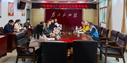慰问活动期间,巫金星向丰顺县县委、县政府,丰顺县委宣传部,丰顺县委统战部等单位赠送了《祖国颂》、《热血铸春秋》、《新时代匠心榜样》等三本书籍,赠书仪式在丰顺县汤坑镇三楼会议厅举行,丰顺县副县长罗灏受县委县政府所托,代表接收了书籍,县政协副主席、汤坑镇党委书记饶富将和汤坑镇镇长及民政局党组书记、局长朱耀辉也亲自参加赠书仪式活动。巫金星表示,很感谢县委、县政府及各单位多年来对他的公益活动大力支持,一直以来,县委、县政府及各级党政机关高度重视老年人工作,为老年人积极创造更加和谐、幸福的晚年生活环境,不断提高幸福指数。是党的坚强领导才有了远达的发展,能为家乡做一些事,他感到非常自豪。这份归属感与责任感,也正是他一路坚持公益的动力。