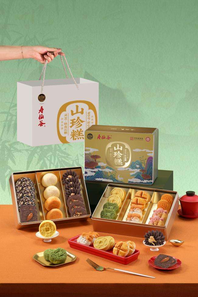 此次联名推出的“山珍糕”礼盒,正是两大老字号对健康养生理念的共同诠释。礼盒内精心搭配了多种低糖、养生的中式糕点,每一款糕点都严格控制糖分摄入,同时融入了铁皮石斛、灵芝等珍贵的药食同源原料,既满足了您对传统美味的向往,又兼顾了健康养生的需求。
