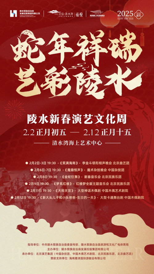 蛇年迎新春,北京演艺集团携多部作品登录陵水演艺盛宴。随着蛇年的到来,海南省陵水黎族自治县即迎来一场文化艺术的盛宴——————首届陵水新春演艺文化周。从大年初五(2025年2月2日)到正月十五(2月12日),多部精彩纷呈的舞台作品陆续登陆陵水,为广大观众带来一场视听双重享受的文化大餐。