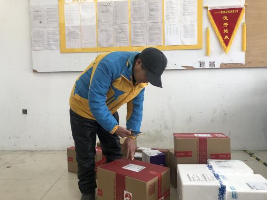 苏宁物流姑苏区苏站路站,快递员李广忠正清点货物,准备开始打电话送件。
