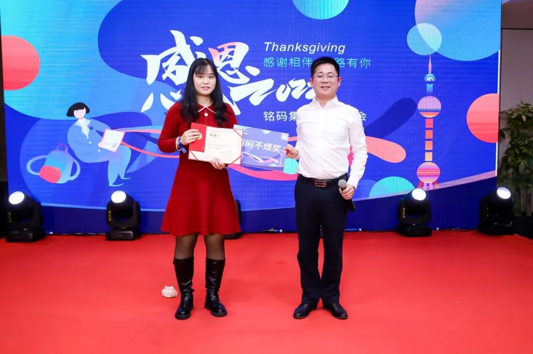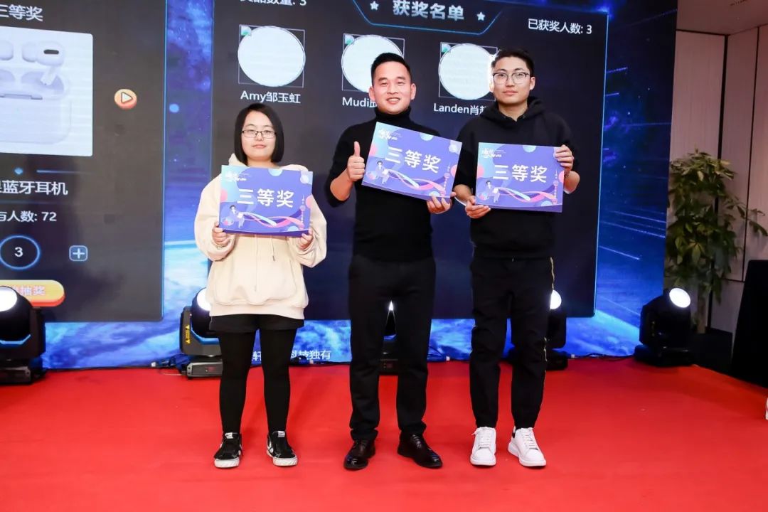 为了犒赏铭码家人们一整年的辛勤付出,年会还特别准备了抽奖环节,以丰富礼品为大家送上新年的好运和福气。伴随着大屏幕的滚动,一轮接一轮的抽奖,幸运儿一个个产生,嗨翻全场。