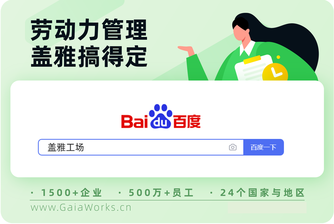 目前,盖雅工场的客户分布在全球24个国家与地区,每天,全球1,500余家客户的500余万员工使用盖雅提供的服务。我们把大量的客户实践和思考浓缩在了一张《劳动力管理地图》,欢迎领取。
