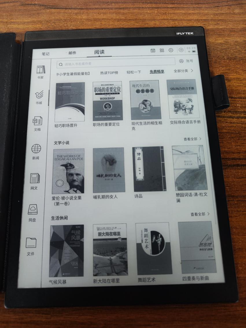 在阅读资源方面,科大讯飞智能办公本X2也拥有当当和讯飞两大书城,就我观察,科大讯飞智能办公本X2上的图书资源更新速度是很快的,不少新上架的书还没开始做宣发,科大讯飞智能办公本X2就能买到资源了。而且大多图书资源都有优惠,力度还不小,如果不愿意花钱的话,免费的资源也是足够阅读的!