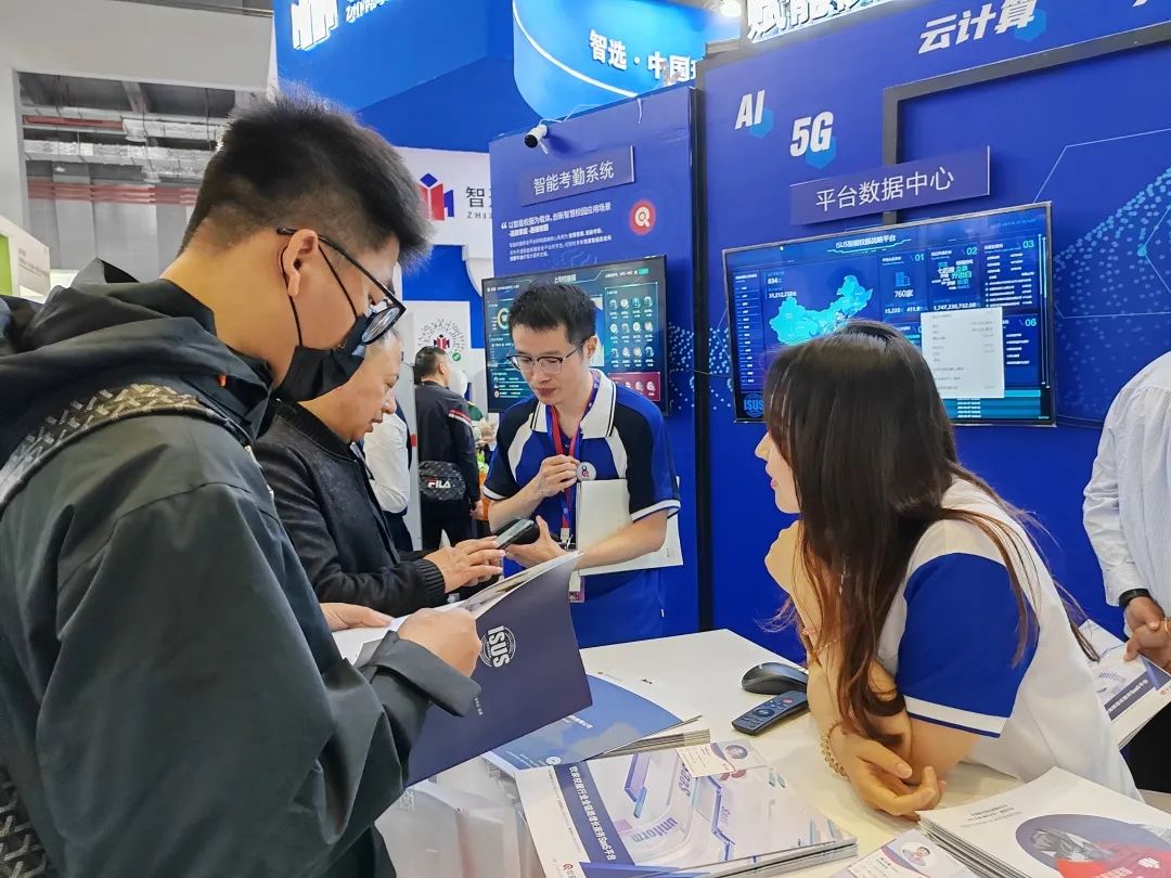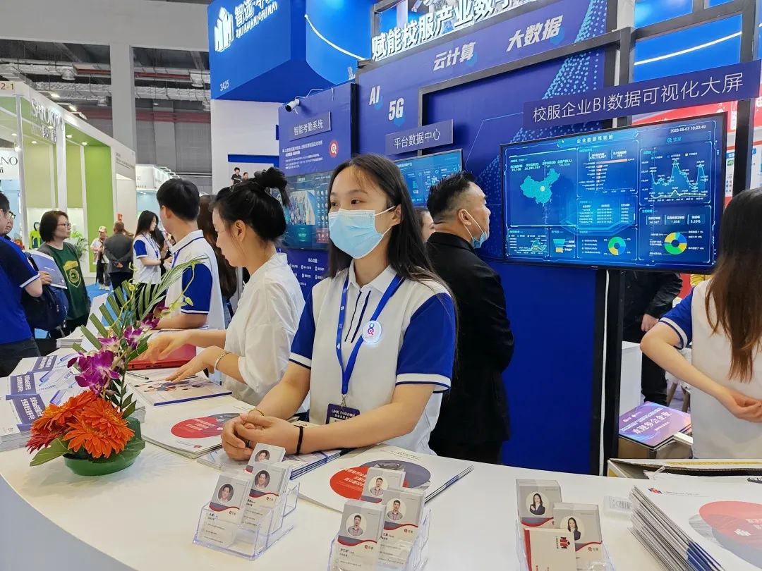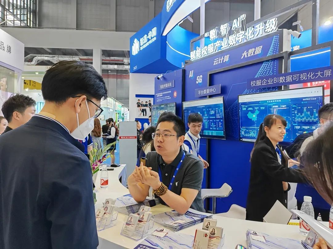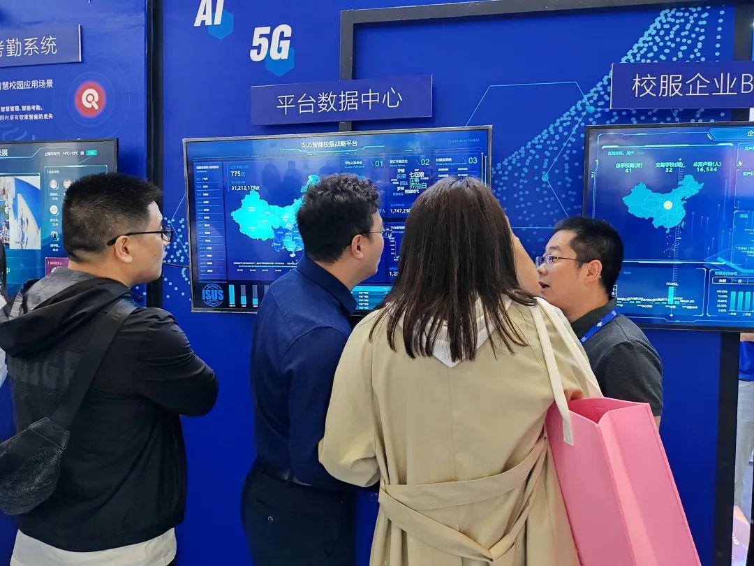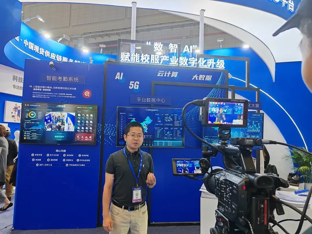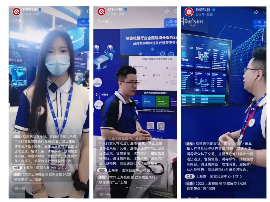 线上线下的钦家同仁一一讲解智能校服、校服监管码、智慧校园、企业BI数据大屏、品牌数字媒体矩阵代运营服务、小程序SaaS商城系统等,参观者对平台赋能校服企业数字化升级的解决方案赞叹有加。