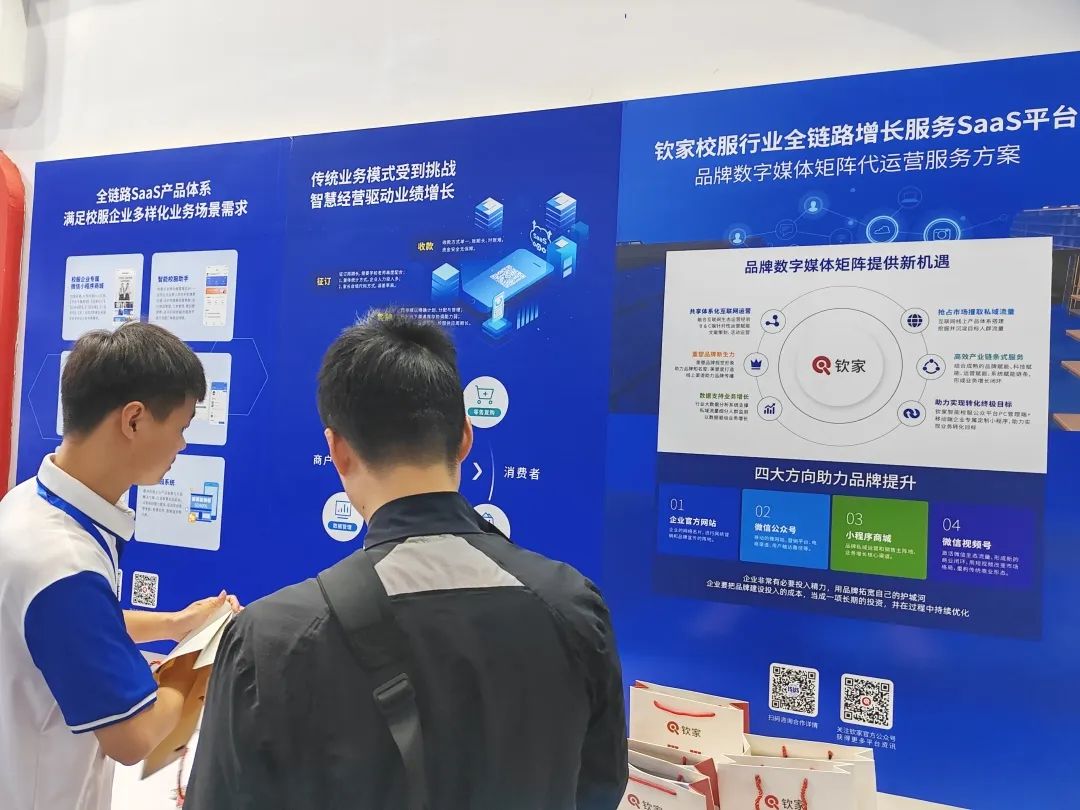 钦家作为校服行业最被信赖的科技平台应邀参展,以现场展示、现场讲解、直播云互动等线上线下相结合的多维度形式,更加真实、全面、立体地展示平台的数字化技术、全链路SaaS产品体系等,旨在赋能校服企业数字化升级,让校服生意变得更简单。