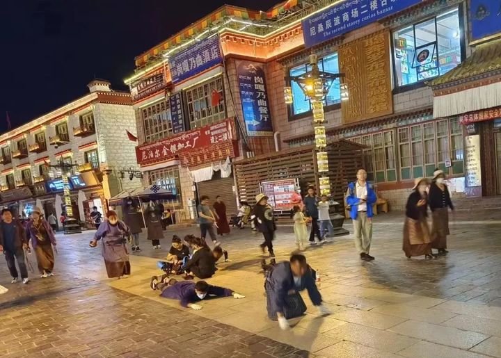 【大昭寺广场】这里有对信仰最完美的诠释。磕长头的朝圣者和穿街而过的喇嘛,诵经和叫卖声一直飘荡在耳边。