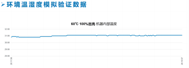 思创激光公布的实验数据可以看出,STR-HW200在60℃ 100%出光状态下,依旧保持在最佳工作温度30℃左右,最大波动为+1.1℃。