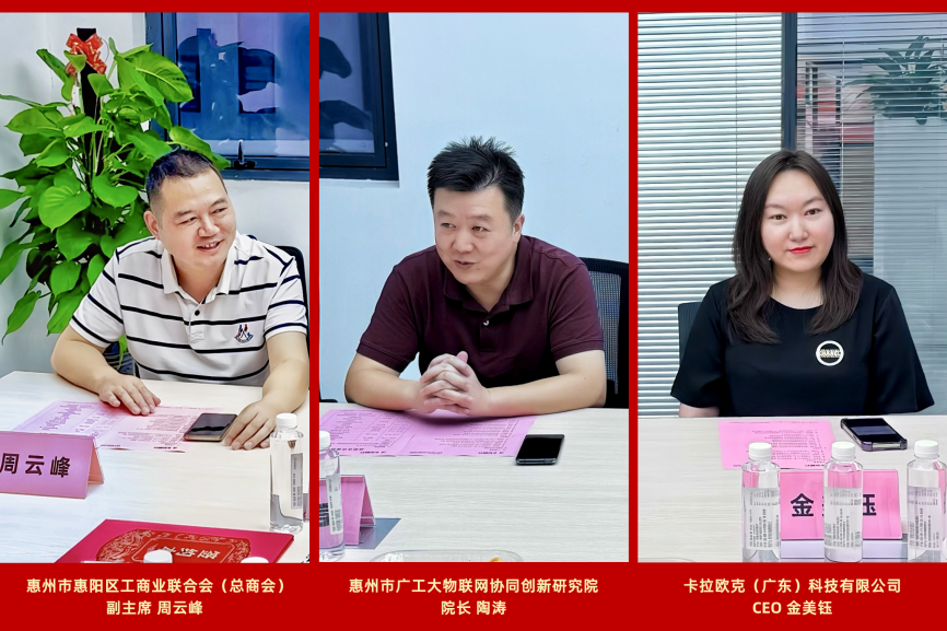 当晚17时,众多嘉宾莅临现场,共同见证这一重要时刻。惠州市惠阳区工商业联合会(总商会)副主席周云峰发表致辞,对此次合作给予了高度评价和殷切期望。广东工业大学惠州市广工大物联网协同创新研究院院长陶涛也在致辞中强调了双方合作的广阔前景和重大意义。卡拉欧克(广东)科技有限公司首席执行官(CEO)金美钰代表企业发言,表达了对此次合作的坚定信心和积极展望。
