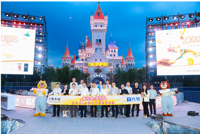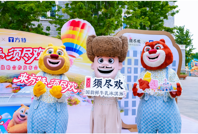 6月28日,华强方特集团与伊利集团在郑州方特欢乐世界举行发布会,标志着“方特”与“须尽欢”冰淇淋品牌正式达成战略合作。双方表示,将充分发挥各自在品牌、产品、IP及渠道方面的优势,共同探索文旅消费新场景,为广大游客创造兼具文化认同感与尽欢体验的新颖产品。