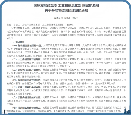 7月8日,国家发改委、工信部、国家能源局联合发布《关于开展零碳园区建设的通知》,明确提出支持有条件的地区率先建成一批零碳园区,有计划、分步骤推进各类园区低碳化零碳化改造。