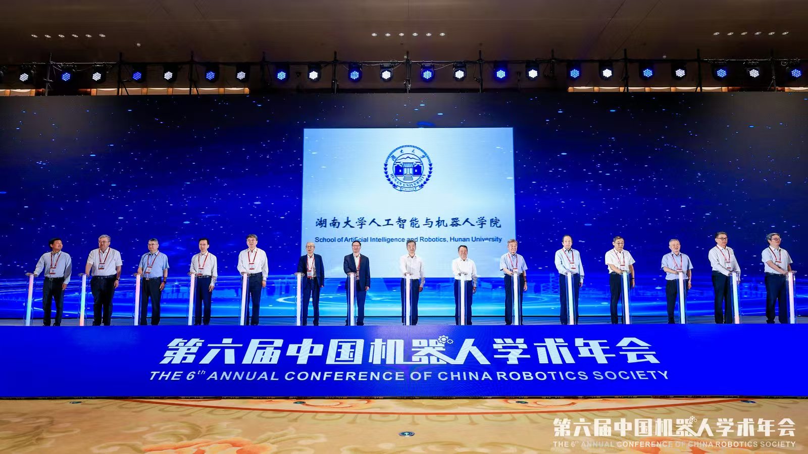 大会开幕式上,湖南大学人工智能与机器人学院正式揭牌成立。揭牌仪式由陈竞副省长、段献忠校长、王耀南院士、王天然院士、桂卫华院士、杨华勇院士、丁汉院士、邓宗全院士、郑庆华院士、刘宏院士、陈学东院士、刘胜院士、于海斌院士、郭雷院士、张建伟院士及与会领导共同按下启动装置,见证这一重要时刻。学院依托王耀南院士在智能感知、运动控制与协同决策等领域十余年的科研积淀,汇聚高水平科研团队和创新资源,致力于构建人工智能与机器人深度融合的交叉学科体系,聚焦关键技术突破与成果转化,服务国家“制造强国”“科技强国”战略,打造面向未来的高层次人才培养与科技创新高地。