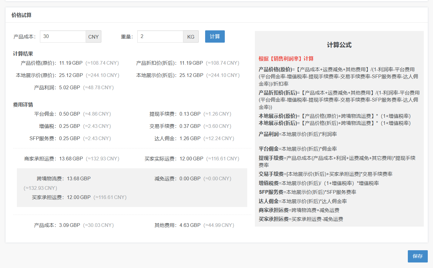 tiktok商品定价模版3、一键试算商品售价:最后,汇总产品成本、采购价、重量,点击“试算”,店小秘ERP便会秒级生成商品售价,精确至原价、折扣价、本地展示价以及利润。