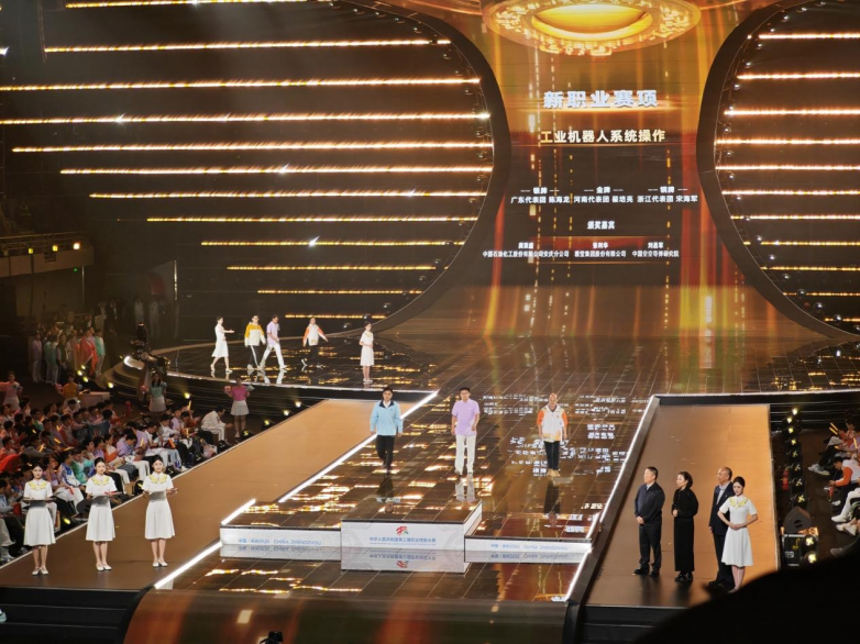 今晚的闭幕式上,各赛项获奖选手依次上台领奖,接受属于技能人才的崇高荣誉。工业机器人系统运维和操作赛项的优胜者们格外引人注目,来自河南、广西、江苏的选手荣获工业机器人系统运维赛项的金、银、铜牌;来自河南、广东、浙江的选手荣获工业机器人系统操作赛项的金、银、铜牌。他们的成就预示着中国智能制造的光明未来。