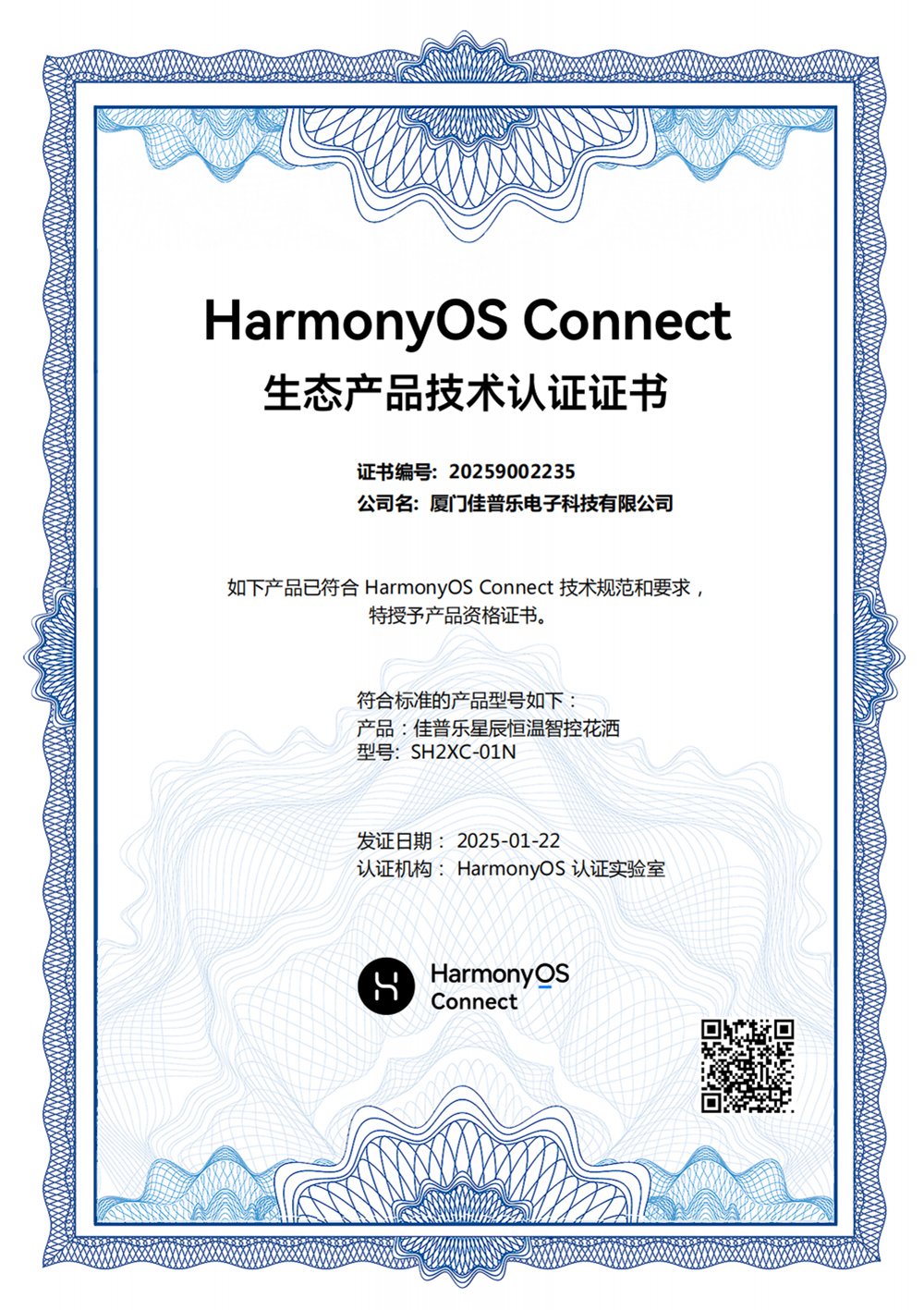 截至目前,佳普乐智能卫浴空间产品累计30款获得鸿蒙智联产品认证,遥遥领先于行业其他品牌,其推出的智能卫浴空间解决方案在华为HarmonyOS Connect伙伴峰会上被授予“鸿蒙智联最佳商业成功奖”,且是卫浴行业中唯一获此殊荣的品牌。