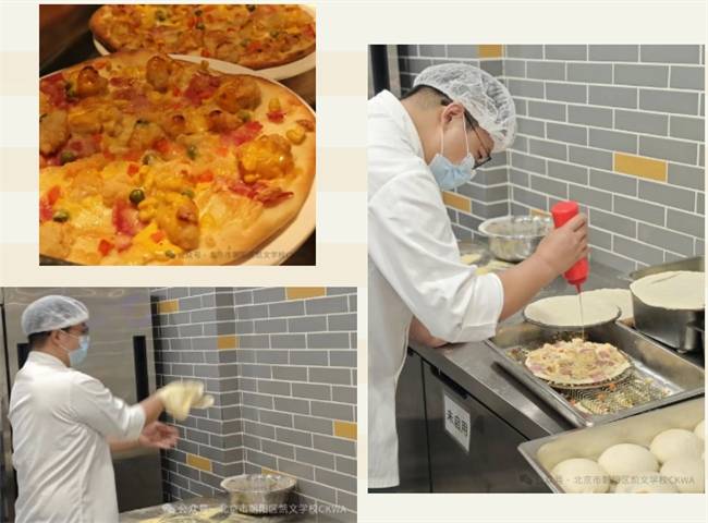 厨师们全程现场操作 :揉制面团、涂抹酱料、铺洒芝士与馅料,烤箱升温间,浓郁香气四处弥漫。