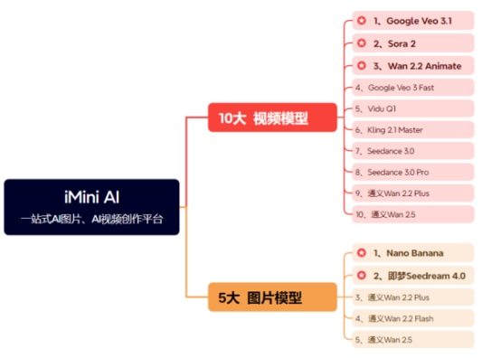 作为定位“端到端”的超级 AI 智能体,imini AI 平台内置 GPT-5、Gemini 2.5 Pro、Claude 4 等 25 款全球主流 AI 模型,覆盖文本生成、数据分析、图像处理等全领域。针对学术研究、商业分析等场景,系统采用“双模型协同回答”,通过交叉验证降低 AI 幻觉风险。例如,在生成市场分析报告时,GPT-5 负责提炼观点,Gemini 2.5 Pro 同步核对数据,确保结论可靠性。而在视频创作中,Wan2.2 Animate 生成的动作视频会经过 Nano-Banana 的画质优化,最终输出 720p 分辨率、24fps 的高清内容。