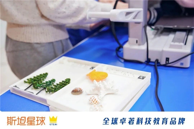 在3D打印体验课上,孩子们近距离感受了3D打印机的神奇。熔融的材料层层堆叠,刚才描述的脑海里的奇思妙想,此刻竟然真的变成了能捧在手心的具象作品。