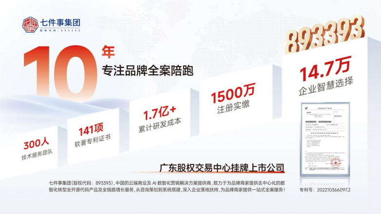 在此背景下,七件事集团积极响应国家 “营造新业态新模式制度环境” 号召,依托过往十年垂直服务中小微数智化转型的丰富成功经验、海量合规业务数据、整合供应链支持与AI+技术赋能,推出针对性解决方案 ——中小企业孵化器,旨在通过全链路赋能,从营销获客、模式裂变、系统搭建、招商落地、人才陪跑、再到财税合规与顶层架构,解决企业从获客到运营再到扩张的全周期需求,助力企业实现精准获客、差异化分销、释放仓储压力、降低运营成本与稳定增长。让更多传统中小微企业品牌方“活下去”且“活得好”。