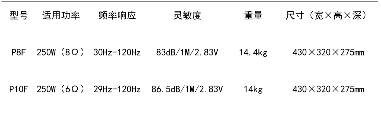 P10F:有源超重低音炮,以心跳式低频唤醒心潮澎湃。