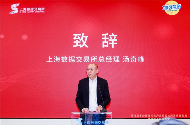 汤奇峰在致辞中表示,RDA对企业的资产数字化能力提出了更高的标准与要求。企业在上海数据交易所确认RDA数实融合资产首先需要满足“产权清晰、收益稳定、数据可验、风险可控”原则。“奶酪及相关产品检验检测高质量数据集”的挂牌和上链意味着妙可蓝多正逐步探索将自身数据资源向数据产品化、数据价值化发展,为妙可蓝多后续推进RDA数据上链、资产上链、收益上链打下坚实基础。未来,随着妙可蓝多奶酪RDA资产数字化工作的稳步推进,上海数据交易所将连接行业协会、第三方检测机构、数商服务机构等,在链上形成可信共识节点,共识共证妙可蓝多数实融合资产的真实运行状态,为后续持续披露、风险监控、权益分配提供可靠技术支撑。妙可蓝多通过RDA这一创新范式,可进一步推动品牌溢价、提升消费信任、坚守食品安全,打造出具有高市场辨识度和溢价的明星产品,实现从“制造”到“智造”的品牌飞跃。同时,妙可蓝多可依托AI大模型、区块链等技术,通过学习海量的检验检测数据,能预测奶酪产品质量趋势,促进工艺革新;RDA实时链上存证与信息披露推动了奶酪产业链上下游共识、共建、共创一座奶酪行业“信任金山”。