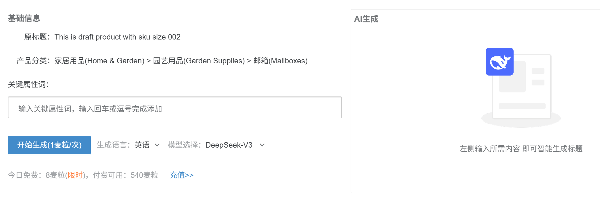 店小秘erpAI功能:店小秘ERP内置AI辅助创作功能,仅需输入核心关键词,系统即可自动生成商品标题/描述,有效提升Listing质量与搜索曝光。