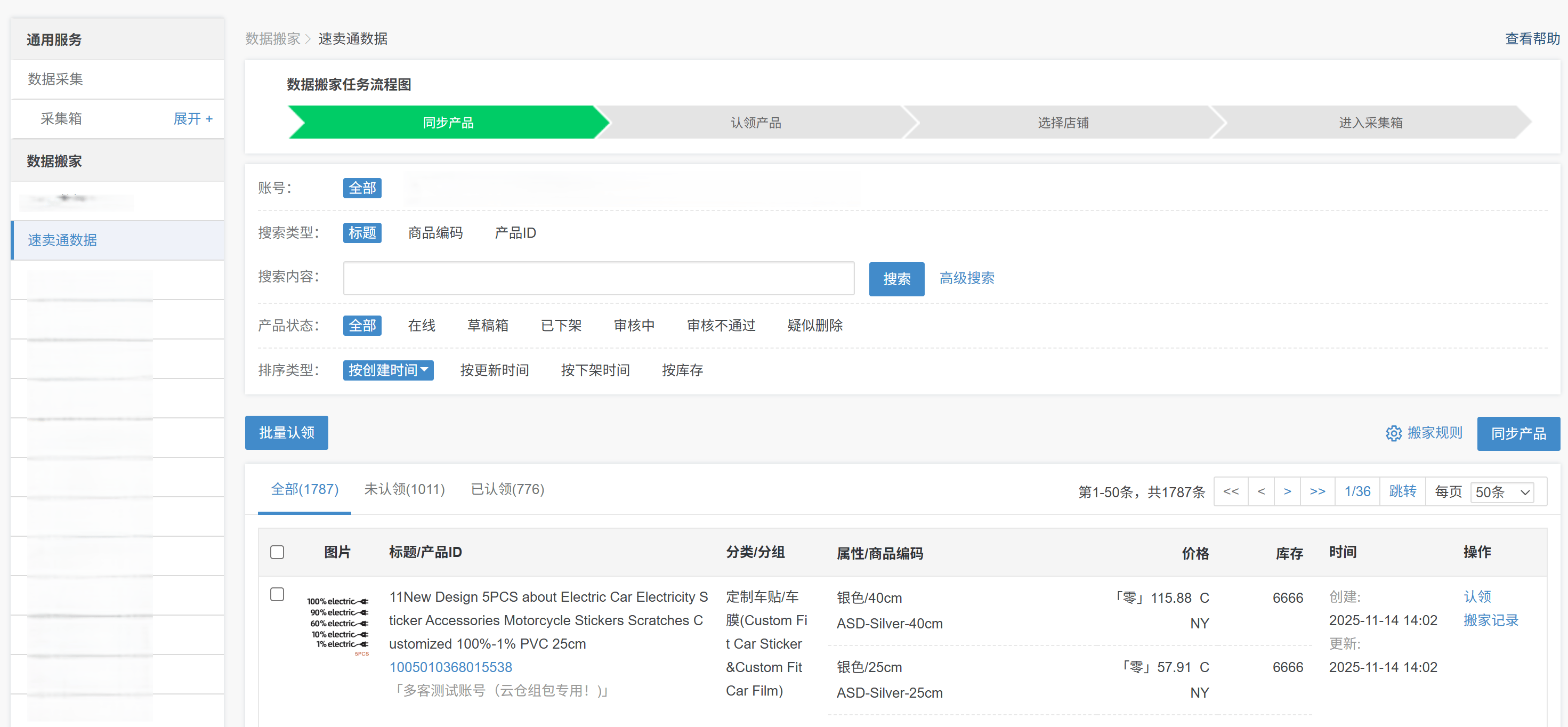 数据采集:支持通过商品链接或插件,轻松采集100+平台站点的商品信息。无论是国内还是海外平台的热销款,均可一键抓取。并且卖家可通过设置认领规则,快速将商品认领到对应店铺。