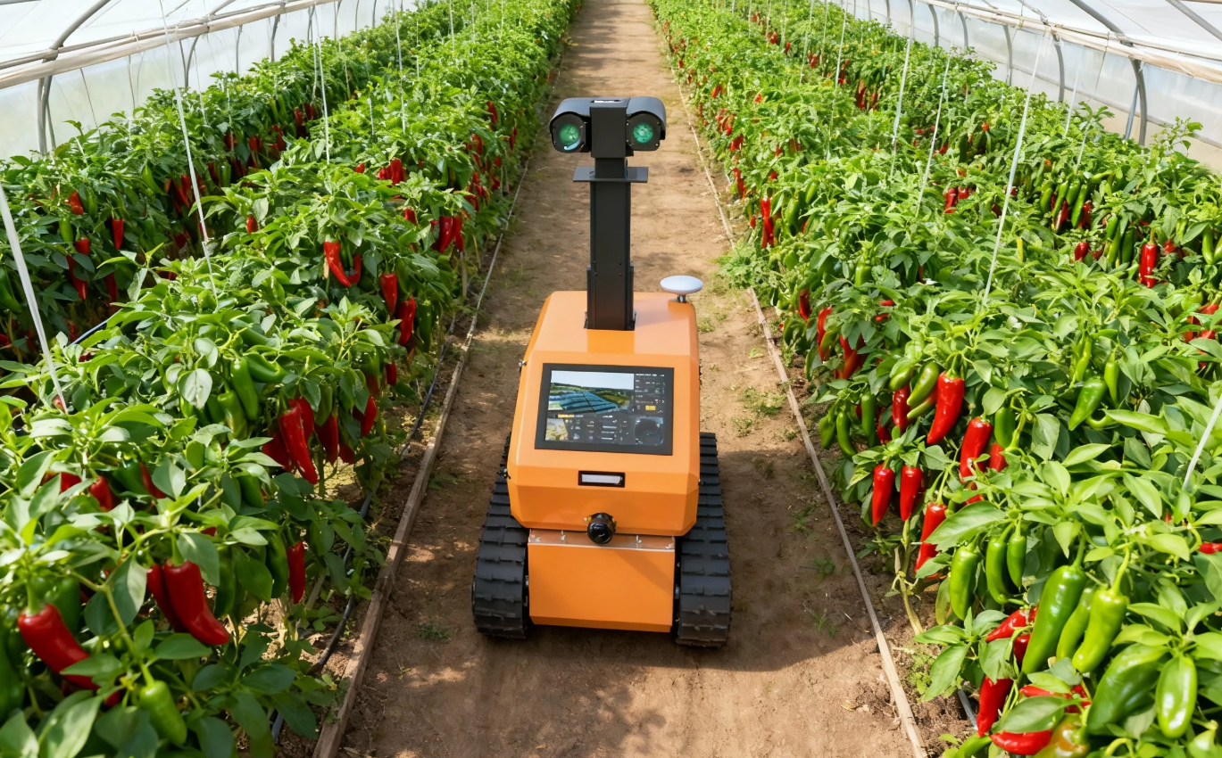 “传统大棚种植依赖人工巡查,一亩地需2人/天管理,现在1台机器人可覆盖20亩,效率提升40倍。”金美科林总经理刘晓明介绍,在此次项目中公司科研团队攻克了“空地机器人协同作业系统”“农业大数据中台”“模块化智能装备集群”三大核心技术难题,研发出旋耕、起垄、播种、采摘等7大类12款农机,适配大田、设施、果蔬等多场景,通过SLAM导航与路径规划算法,实现地面巡检机器人与空中无人机的动态避障与任务分配,作业精度达厘米级。