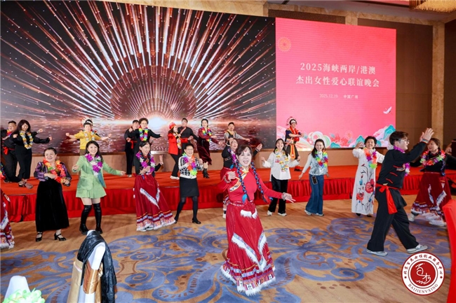 12月19日晚,“2025海峡两岸/港澳杰出女性爱心联谊晚会”在广州举行。由北京百杰女性创业服务中心与中国广告主协会妇女工作委员会联合主办,并得到全国台联台胞事务部与广州市台联的大力支持。来自海峡两岸及港澳地区的杰出女性代表、各界嘉宾近两百人齐聚一堂,温情洋溢。以“爱心联谊”为主题,共叙情谊、共展风采、共献爱心、共话未来。