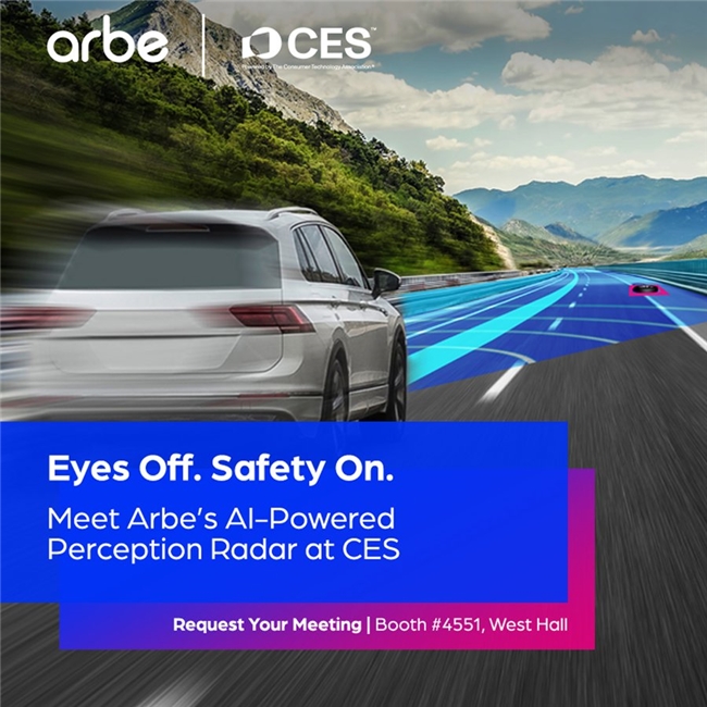 2026年1月6日至9日,CES国际消费类电子产品展览会将在美国拉斯维加斯会展中心盛大启幕。作为自动驾驶感知雷达技术的头部企业,Arbe将携其突破性超高清雷达技术亮相西馆4551号展位,诚邀行业专家、科技爱好者与媒体朋友们莅临参观,共同见证重新定义雷达分辨率标准的革命性技术。