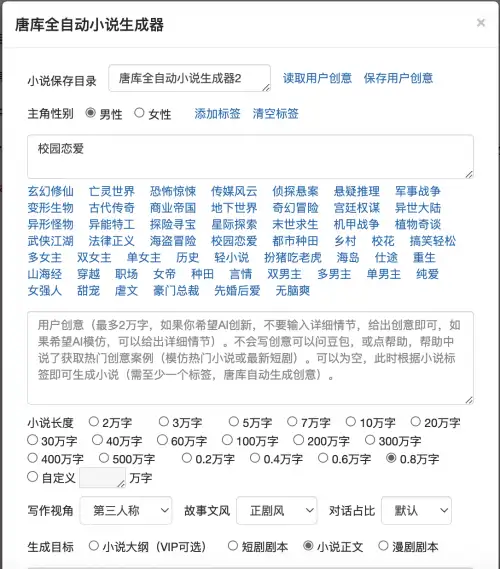 为何普通AI无法写出长篇小说?因为一部长篇小说,是智慧的聚合体,例如《红楼梦》,是曹雪芹一生智慧的结晶。而一次AI调用,只能获得“有限的智慧”,同一个文案调用AI的次数越多,这个文案的“总体智慧”也就越多,但普通的AI无法把多次调用的智慧有机的聚合在一起,唐库正好做了这件事:即使生成2万字短篇小说,唐库也需要调用25次AI,这样才能生成富含“智慧”的作品,25次对比你用AI单次对话生成的小说,哪个品质更高还用怀疑吗?