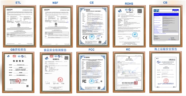 钲芯不仅在技术创新上不断突破,更在质量管控方面坚持高标准,成功树立了智能奶茶机行业的品质标杆。公司不仅通过了ISO9001质量管理体系认证,还满足了全球多个重要认证标准,包括GB电器安全、CE欧盟、RoHS、美国NSF、韩国KC和FCC等,确保产品在电气安全、食品卫生、电磁兼容等关键领域始终保持行业领先地位,并确保全球市场的广泛合规性。