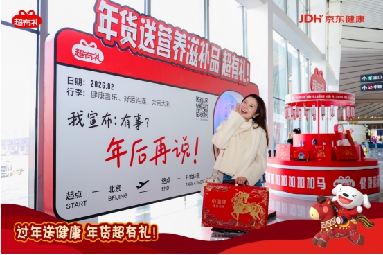 京东旅行携手京东健康“超有礼”IP在此次年货节中,通过全链路航空场景营销实现了品牌与用户的深度互动,围绕“机场快闪—主题登机口—主题航班—行李传送带惊喜事件”构建贯穿出行始终的品牌体验闭环,以创新的事件组合与场景融入,将健康关怀自然嵌入用户春运旅程。这一策略高度适配春节出行场景,不仅精准触达返乡、探亲、商旅等多类用户群体,更通过具象化的健康礼品派发、温情惊喜体验等,持续强化“春节送健康礼”的消费心智,成功将健康礼赠塑造为新年问候的情感载体与品质之选。