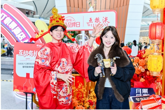 京东旅行携手五粮液在此次年货节中围绕“机场快闪—主题航班—行李传送带惊喜事件”构建全链路航空场景营销体系,通过场景沉浸与体验互动相结合的方式,创新打造“空中礼遇”高端消费场景。这一营销策略精准契合春节出行期间高品质用户的礼赠需求,在航空场景这类高净值人群聚集场景中实现精准触达。通过文化展示、互动与礼赠惊喜的多维渗透,五粮液X京东超级品牌日不仅强化了其作为春节高端礼赠首选品牌的认知,更成功将“飞行途中·礼载心意”提升为春节消费的新风尚,进一步巩固了在高端年货市场中的心智占位与品牌势能。
