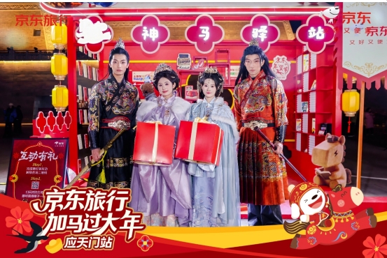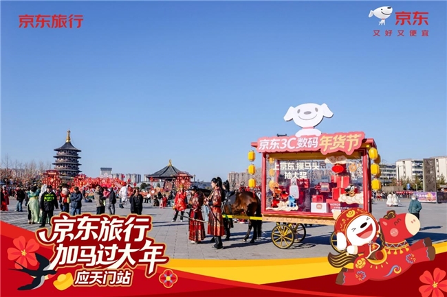 与此同时,在洛阳应天门景区,京东旅行携手京东数码、京东物流、伊利等品类品牌,以“国风快闪”为核心形式,融合真实马匹巡游、唐风NPC互动、马车送年货等话题事件,将传统文化场景与品牌产品自然嫁接,不仅强化了景区文化体验的鲜活感,更通过“真马营销”等创新手段在社交平台形成二次传播,成功塑造了“文旅+品牌”的场景营销新范式。