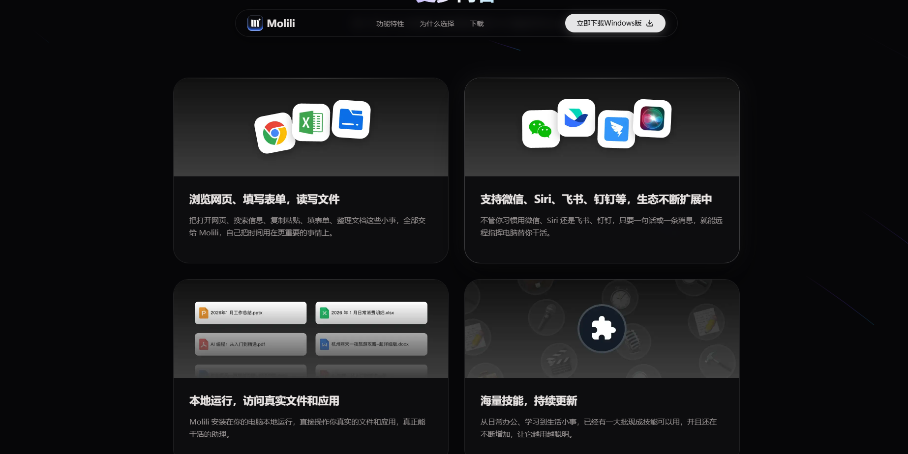 平台支持范围决定了工具的适用场景。Molili支持Windows和macOS(包括M芯片设备),覆盖了绝大多数个人和企业用户的使用环境。OpenClaw虽然支持多平台,但依赖复杂的环境配置,增加了使用门槛。元气AlBot主要以Windows为主,在跨平台支持上略显不足。Molili的跨平台兼容性不仅全面,而且在不同系统上的表现一致,用户体验连贯统一。