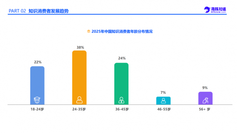 从年龄结构看,24岁至45岁人群仍为知识付费的核心消费基础,合计占比超过六成;与此同时,18至24岁及45岁以上消费群体占比同步上升,表明知识付费已不再局限于单一年龄阶段,而是逐步覆盖从学习探索、职业发展到家庭与健康管理的完整人生周期,知识付费正由阶段性、工具型需求,演变为贯穿个人长期发展的日常生活方式。