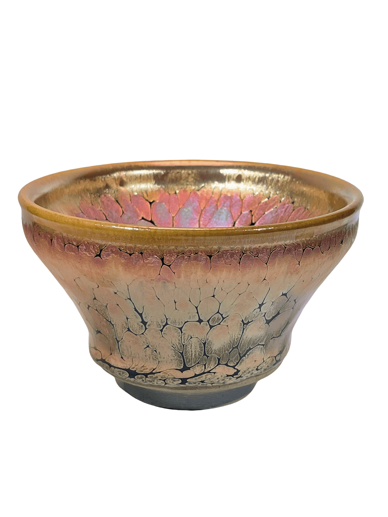 釉面呈现上,金浮雕冠军盏更是独具匠心,采用建阳本地原矿釉,经高温一次性烧制而成,自然窑变形成的金光闪烁质感,区别于市面上常见的镀金、描金工艺,黑亮底色搭配灵动金斑,既有视觉冲击力,又耐人品味,每一处釉色肌理都彰显着匠人的极致追求。这种对原料与工艺的坚守,正是春申阁打破行业乱象、重构建盏价值标准的生动体现。