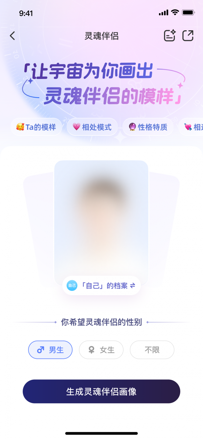 这个功能的核心不是“匹配双方”,而是“让你看清自己想要的灵魂伴侣是什么样子”。它基于“人际特质匹配理论”——每个人独特的人格决定了思维和行为上的差异,而人与人之间的契合度,取决于这些特质是否相合。