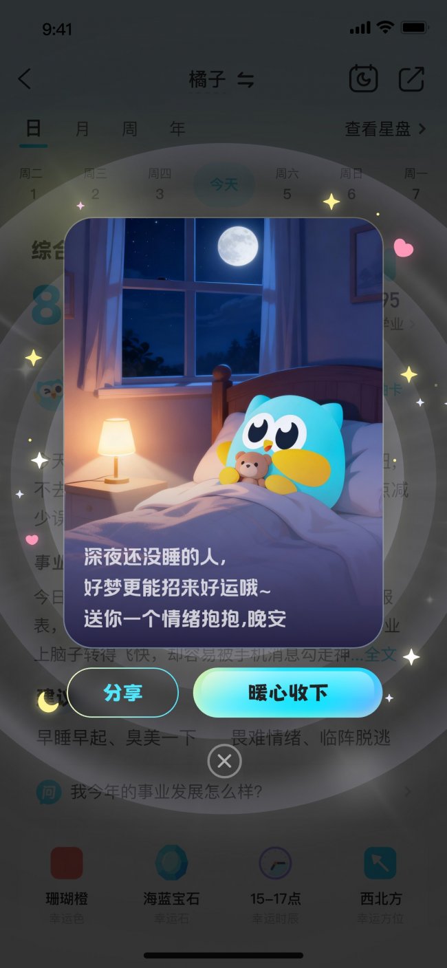 如果把这三个新功能放在一起看,会发现一个清晰的逻辑演进。现在的测测,正在变成“主动型”产品。陪伴小星会在深夜主动问候你,能量任务会在早上推给你当天的挑战,灵魂伴侣会引导你一步步看清自己的需求。