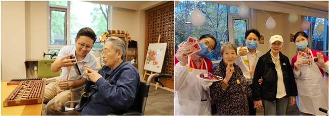 在长辈入住前,社工和护理、医疗组成的评估团队对长辈进行全面评估,评定护理等级;入住后,社工会再次拜访,从身体、心理、社交三个层面来了解长辈的现状,帮助他们尽快适应社区生活。另外,营养师会定期为每位居民进行营养评估,根据身体状况制定个性化调理方案;文娱活动师根据长辈的兴趣爱好、健康状况,策划极具特色的文娱活动;而管家更像社区的毛细血管,从安全访视到居民报修,从长辈身体慰问到帮助连线家人,把居民和各个服务部门联系在一起……在这支团队的守护下,衰老不再是生命后半段里程坠落的失重,而是被“1+N”服务团队托举的平稳滑翔。