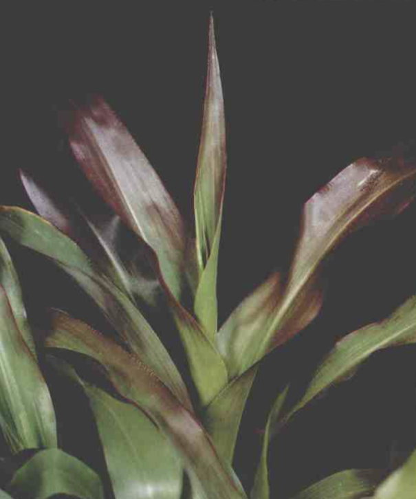 玉米缺磷:叶片的叶缘呈紫红色