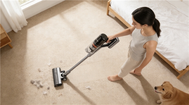 生活痛点:养猫家庭每次清理床铺,猫毛很容易堵死滤芯,导致机器吸力骤降。