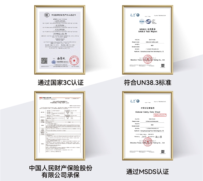作为全国首批获得国标3C认证的品牌,华集源产品在防水、防震、防火、抗冲击等方面,都通过国家级专业测试。电池内部选用优质材料,科学布局实现体积更小、散热更快、结构更稳固,全方位守护使用安全。