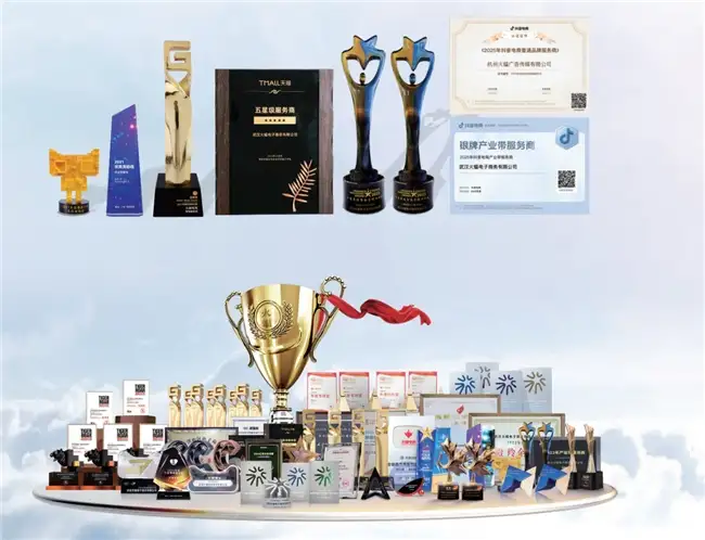 这份坚持获得了官方认可:火蝠电商连续7年被天猫官方评选为"五星级"运营服务商,连续5年被淘宝官方评选为"六星级"运营服务商,2024年获抖音电商品牌服务商授牌,连续4年入选中国品牌电商服务商排行榜TOP10。