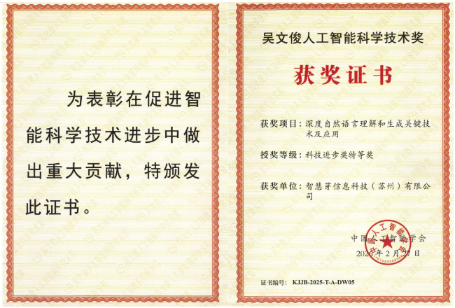 哈尔滨工业大学(深圳)、智慧芽首席AI科学顾问张民教授团队的《深度自然语言理解和生成关键技术及应用》项目,荣获“吴文俊人工智能科技进步特等奖”。智慧芽作为该项目的主要完成单位之一获得表彰,代表着智慧芽以AI赋能科技创新的技术路径与产品能力,已获得学术界与产业界的高度认可。