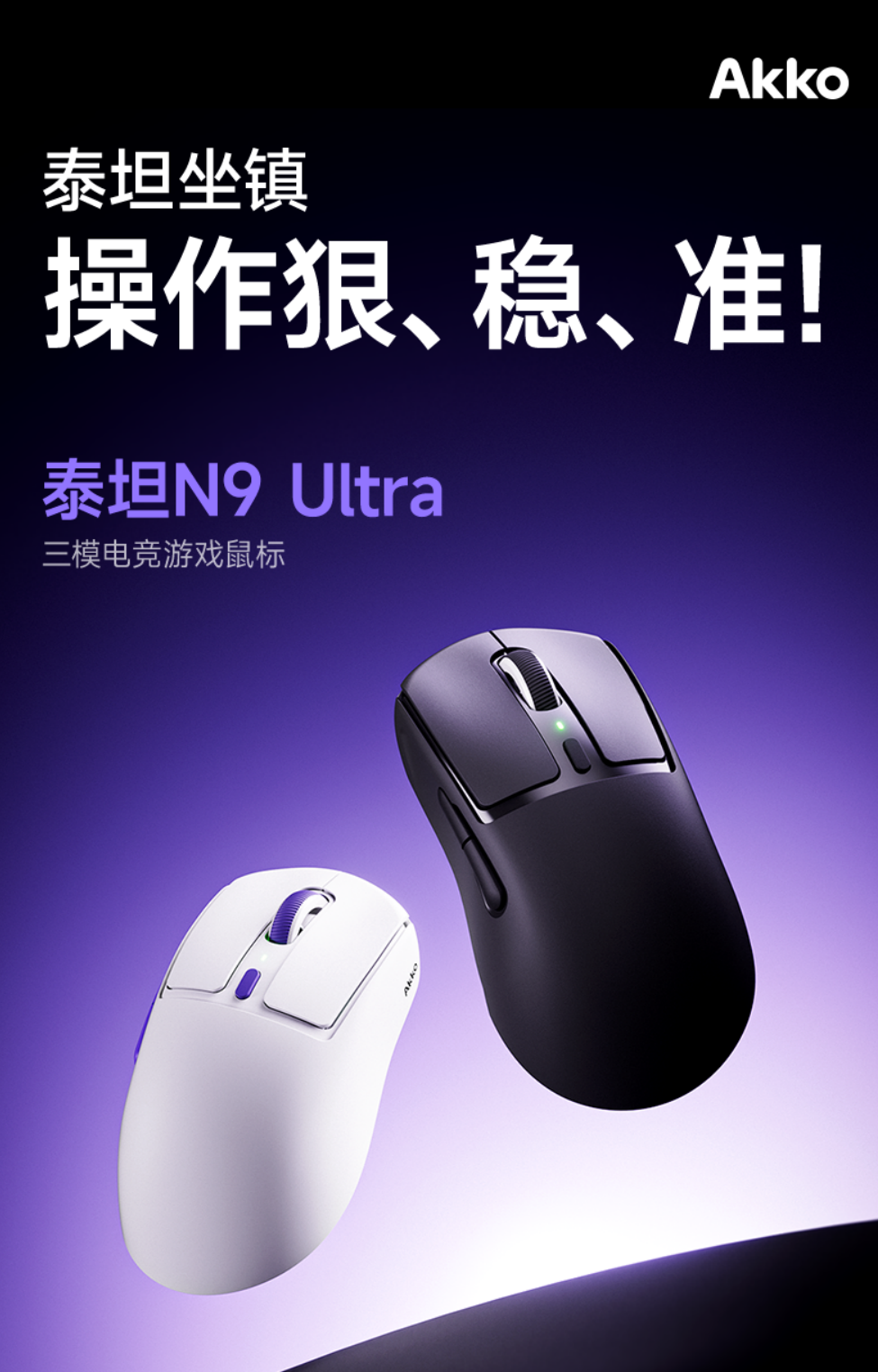 专业电竞外设品牌Akko正式推出泰坦N9系列三模电竞鼠标。继巢Nest后又一次在右手人体工学领域交出完整答卷。旗舰型号泰坦N9 Ultra搭载Nordic 54L15主控芯片与PAW3950光学引擎,配合自研“右手中大手”模具,试图在中大手型鼠标市场中建立一个兼顾低延迟、长续航与自然握持感的新标准。该系列将于4月10日20:00全平台首发。